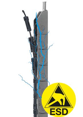 Les Chaînes Porte-Câbles zipper ESD convainquent par leur praticabilité et leurs performances. La fonction "fermeture à glissière" permet de réduire le temps de montage. Le petit pas, la bande élastique robuste Zipper et les maillons très résistants sont incroyables lors d'accélérations élevées.