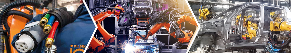 Die Prozessabläufe im Karosseriebau sind fließend. Steht ein Maschinenteil still, fällt die ganze Produktionsstraße aus. Um die elektrischen und pneumatischen Leitungen und Zufuhrschläuche der Roboter in der rotierenden Bewegung und vor Schweißfunken zu schützen, hat igus die Energiekette triflex entwickelt. Sie macht die Mehrachsbewegungen spielend mit, ist leicht zu montieren oder Instand zu setzen und einfach anzupassen.