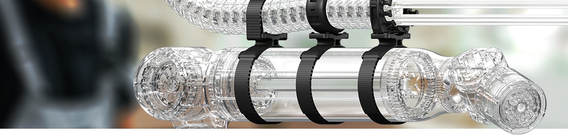 La Clip per cavi è l'alternativa al morsetto del cobot. Quando i cavi e i tubi devono essere fissati al cobot solo per un breve periodo di tempo (ad esempio, in una fiera), la clip per cavi è un'alternativa rapida al morsetto del cobot.