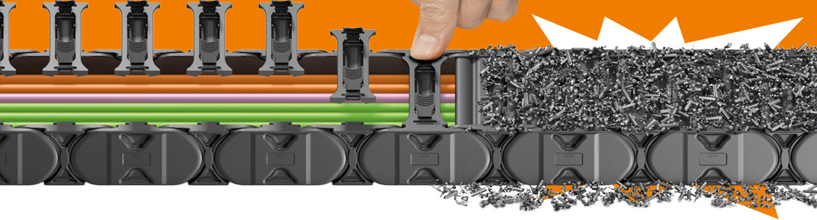 Energieketten der Serie E4Q/R4Q wurde entwickelt, um die bestmögliche Lösung für freitragende und lange Verfahrwege zu ermöglichen. Angelehnt an den robusten und über 12 Jahre bewährten Energieketten-Standard E4.1, bringt die neue Serie eine lange Lebensdauer und eine hohe Modularität mit sich.