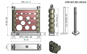 Durch Kunststoff-Verbindungselemente können auf engsten Raum mit angepassten PU-Bausteinen Leitungen zugentlastet werden. Durch dieses modulare Stecksystem können kundenindividuelle Zugentlastungsmöglichkeiten angeboten werden.