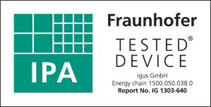 46 dB(A) - valore determinato al laboratorio di prova igus®, v = 1,0m/s non supportata, ad es. serie 2600.05.075.0