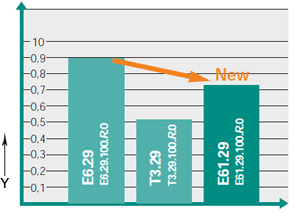 Economie de poids d'environ 30% par rapport au système E6