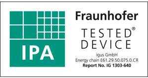 L'utilisation d´un matériau spécial permet de réduire encore considérablement l´abrasion déjà très faible de la chaîne porte-câbles. Une chaîne porte-câbles peut ainsi être utilisée dans de nombreuses applications mettant en oeuvre des solutions spéciales compliquées. Un vaste programme de tests a été réalisé tant pour les applications "glissantes" que pour le montage en autoportance. Pour de nombreuses applications, les chaînes porte-câbles en matériau spécial sont quasiment sans usure. Des tests effectués par l´IPA confirment que les chaînes porte-câbles standard igus® répondent aux exigences des salles blanches et sont "contrôlées et considérées comme très aptes". Les salles blanches exigent une très grande résistance à l´usure des pièces en mouvement. Les chaînes porte-câbles par exemple doivent être très résistantes à l´usure pour répondre aux normes dans ces milieux sensibles.