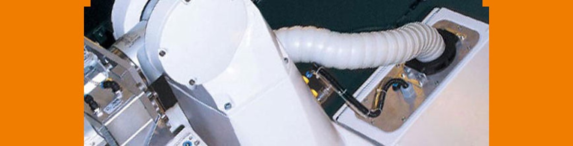 triflex R Roboter Arbeiten unter Reinraumbedingungen. Die weiße Energiezuführung unterstützt den "sauberen Eindruck"