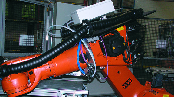Sichere und flexible Leitungsführung für KUKA-Knickarmroboter im Flugzeugbau