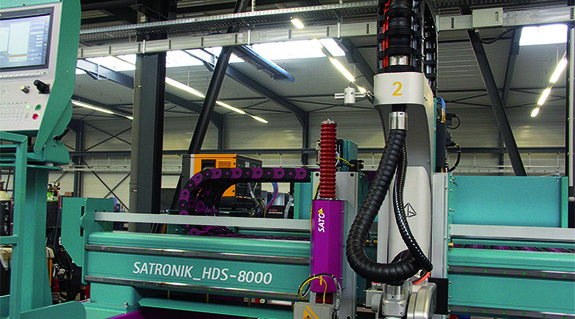 Die Energieketten und Leitungen in dieser Brennschneidmaschine sind mit Problemen wie Hitze, Funkenflug und extremem Schmutzanfall konfrontiert.