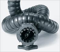 triflex® R (R für "rund") ist igus® dritte Generation von 3-Achsen Energieketten. Speziell für anspruchsvolle 6-Achsen Roboter-Anwendungen in rauen industriellen Umgebungen ist das mehrachsige Energieführungssystem triflex® R entwickelt worden. Einige entscheidende Konstruktionseigenschaften sind: Option mit Federstab zur teilweisen Versteifung der triflex® R, ca. +/- 10° Torsion pro Kettenglied, hohe Zugfestigkeit durch Kugelgelenk. Mit mehr als 100 Komponenten steht die triflex® R Produktfamilie inzwischen zur Verfügung, so daß vom großen Schweiß- bis zum kleinen Palletierroboter alle Anforderungen abgedeckt werden können. triflex® R ist iF-Design prämiert.