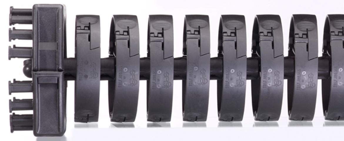 Leitungen und Schläuche können einfach mit dem Daumen in die Kette hineingedrückt werden. Das spart bis zu 80% Montagezeit