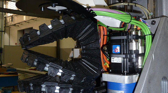 Low-maintenance cable guidance in CNC grinding machines, encountering oil and chips