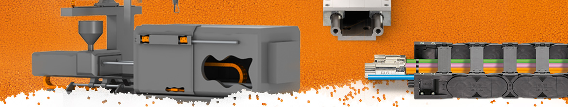Nell'alimentazione di energia in macchine per la lavorazione della plastica, carichi elevati, accuratezza e temperature elevate sono importanti. Utilizzando catene portacavi in plastica in linee di film soffiato, macchine di stampaggio a iniezione o estrusori, potete proteggere cavi e tubi. Anche con riempimenti pesanti, le catene portacavi in plastica hanno i loro vantaggi: