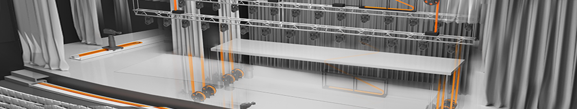 Jede Bühne ist individuell und daher müssen alle Komponenten nicht nur selbst leistungsstark, dauerhaft und effizient sein, sondern auch optimal zusammenpassen. Theater- und Bühnenbau stellen besondere technische Anforderungen. Unter anderem müssen hier hohe Lasten wie Traversen, Bühnenbeleuchtungen, Bühnenbilder oder ganze Bühnenpodien sicher verfahren werden. Außerdem dürfen technische Hilfsmittel weder optisch noch akustisch die Aufführung beeinträchtigen. igus bietet Energieführungssysteme, hochflexible Leitungen und Kunststofflager an, die genau diesen Anforderungen gerecht werden. Weil igus zudem modulare Systeme und ein breites Sortiment an Bauelementen zur Verfügung stellt, können individuelle Anwendungen unkompliziert und schnell verwirklicht werden.