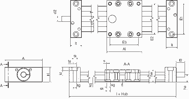 | Lunghezza della corsa [mm] | Peso [kg] | Aggiuntivo (ogni 100 mm) [kg] | Carico assiale [N] | Carico radiale [N] | Materiale | Per corsa base 100 mm | |||