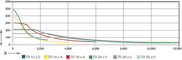 Die Eignung der Spindel-Lineareinheiten für Ihre Anwendung kann anhand der untenstehenden Diagramme überprüft werden.