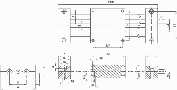 | N. d'ordine | A -0,3 | Al -0,3 | H | E1 ±0,15 | E2 ±0,15 | E3 ±0,15 | l | R | f | lt ±0,1 | tk | ts |