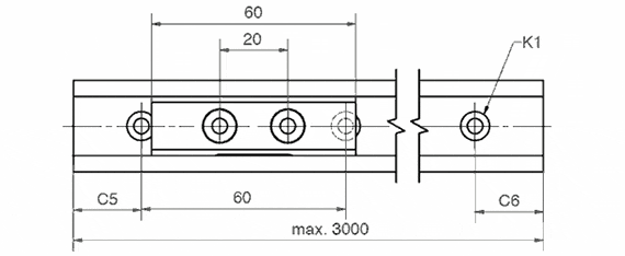 N. d'ordine Lunghezze del binario max. a C4 A3 C5=C6 h h1 K1* ly lz Peso del binario Prezzo/m
