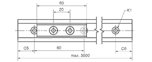 | N° de commande | Longueur d´arbre maxi | a | C4 | A3 | C5=C6 | h | h1 | K1* | ly | lz | Poids du rail | Prix / m | ||