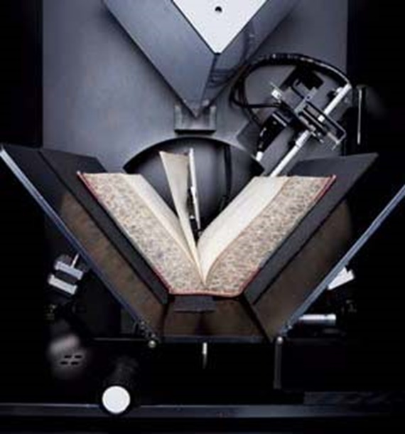 Diese Maschine kann Bücher vollautomatisch einscannen, ohne dass menschliche Unterstützung notwendig wird. Die Bücher können bis zum DIN A2- Format vorliegen und bis zu 100 Millimeter dick sein. Jede Seite wird von den eingebauten Digitalkameras abfotografiert und gespeichert, dann blättert die Maschine weiter. Alle Hauptelemente der mechanischen Bewegungen wie Linearachsen, Gleitlager, Gleitführungen etc. werden mit igus®-Produkten realisiert.