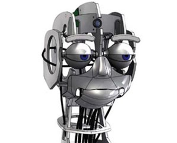 Wenn man ihn anlächelt, lächelt er zurück. Schaut man grimmig, blickt auch er grimmig drein. Dieser Roboterkopf kann durch seine Mimik Emotionen zeigen und imitiert dabei sein menschliches Gegenüber. Voraussetzung hierfür ist ein präziser Bewegungsablauf der einzelnen Gesichtszüge. Dafür müssen im Kopf des Roboters zahlreiche bewegliche Elemente untergebracht werden, die für den wartungsfreien Dauereinsatz besonders wartungsarm und langlebig sind. Außerdem müssen die Antriebseinheiten für die Bewegung der Gesichtszüge mit einer minimalen Anzahl von Bauteilen robust und langlebig aufgebaut werden. Viele spielarme und kleine iglidur®-Gleitlager, auf engstem Raum angeordnet, stellen hier die Schlüsselkomponenten der Anwendung dar.