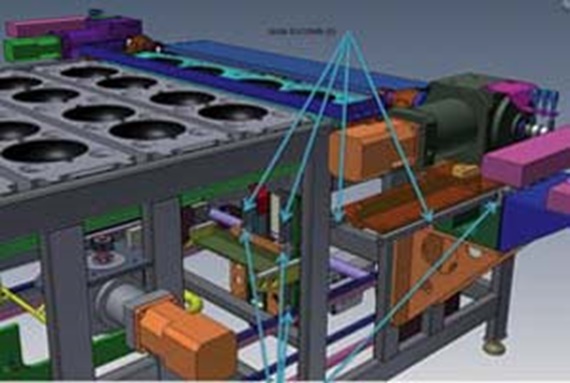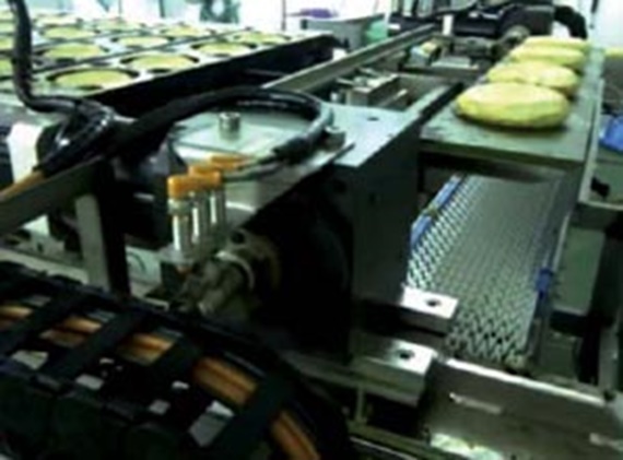 Diese Maschine brät eines der spanischen Nationalgerichte: die Tortilla de patatas, das Kartoffel- Omelett. Dabei schafft sie über 1.800 Omeletts pro Stunde. Die Pfannen für die einzelnen Omeletts werden in Viererreihen durch die Maschine bewegt. Zum Einsatz in der heißen und fettigen Umgebung kommen Gleitlager aus iglidur® Z, an Stellen mit direktem Lebensmittelkontakt Gleitlager aus iglidur® A200. Da die Tortillas von beiden Seiten gebraten werden müssen, ist eine Drehung erforderlich. Mit Hilfe von pneumatischen Zylindern werden die Omeletts gestürzt. Auch diese Bewegung wird mit igus®-Produkten geführt. Diese Aufgabe übernehmen zwei drylin® OGA-Lineargehäuse auf einer unterstützten Edelstahlwelle. Diese Lösung eliminiert Ausrichtungsfehler. Wichtig ist auch die Beständigkeit der Bauteile gegen chemische Reinigungsmittel, die bei den igus®-Produkten gegeben ist.