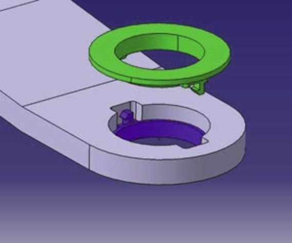 It was decided to explore the possibilities of a plastic bush and igus® was contacted to discuss the situation. Plastic bushes had previously been explored and one of the main problems was electrical conductivity. It was explained that bushes made from iglidur® RN89 had good electrical conductivity and would recalibrate during the e-coat process and that this could be a good starting point. Samples were manufactured and tests carried out. It was established that hinges could be built with a force of 20 newtons and after the e-coat process this reduced to 8 newtons with no significant loss in stiffness. Hinges were tested at -40 degrees and proved to show very little increase in torque. There were two problems that were highlighted during the test work. Firstly the life time tests, 30,000 cycle endurance with environmental exposure, mainly Arizona dust and salt water. The hinges failed at 10,000 cycles due to the bushes rotating in the housing. The housing holes are punched into 47 ® 3.5mm steel and therefore have a small amount of burr. If the bushes started to move in the housing this burr started to cut into the bushes until they were completely destroyed. This was temporally overcome by gluing the bushes into place; the hinges then passed the endurance tests and also various other tests, including water absorption, stiffness, lateral displacement and the effect of long term static loads. The customer additionally carried out these tests on vehicles in climatic chambers. Vehicles were also built and sent on long winter and summer test, involving approximately 8 weeks in cold and hot desert conditions. Secondly, the bushes fell out of the housing during the assembly process. This was overcome with the addition of gluing the bushes in to the holes, but this could not be a production route to take. An iglidur® bush was designed to stop the rotation and also clip together in the hole. The design is a simple bush that fits each side of a shaped hole that is quick and easy to assemble. The cost of the new bush design is slightly less than the current single steel backed bush and there are potential cost improvements with the assembly process.