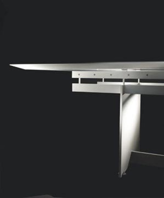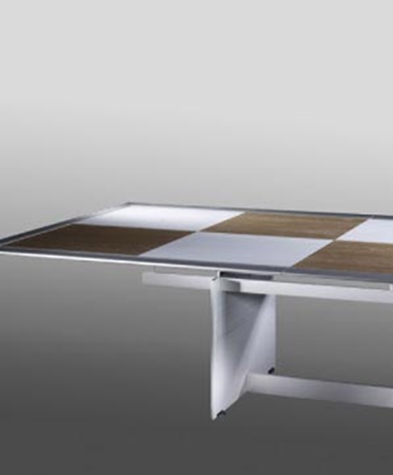 Hier wird ein ausziehbarer Ess- und Konferenztisch mit höchstem Designanspruch gezeigt. Die Tischplatte scheint auf dem Unterbau zu schweben. Einziger Berührungspunkt zwischen Tischgestell und Tischplatte sind vier Gewindestifte. Dazwischen laufen die Linearlager für den Auszugsmechanismus in Aluminium L-Profilen. Durch Einsatz der igus® drylin® W-Linearlager konnte ein besonders schlanker Auszug realisiert werden. Er gleitet ohne Verkanten und völlig geräuschlos. Durch die präzise Führung kann der Tisch sowohl im ausgezogenen als auch im ursprünglichen Zustand mit Leichtigkeit verriegelt werden.