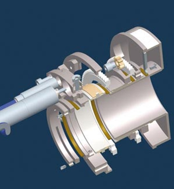 Die Projektoren in einem Planetarium sollen nicht in den Zuschauerraum projizieren, um Blendungen der Zuschauer zu vermeiden. Zu diesem Zweck werden Blenden eingesetzt, die sich abhängig von der Lage des jeweiligen Projektors selbständig ausrichten. Die für die Blenden eingesetzten Lager müssen wartungs- und schmiermittelfrei sein, da sie unmittelbar mit optischen Elementen in Berührung kommen. Weiterhin müssen sie Temperaturen von über 90° C im Dauerbetrieb standhalten. Hier wird das Gleitlagermaterial iglidur® Z eingesetzt. Besonders pfiffig: ein reguläres Lager wird in Ringe der benötigten Größe zerteilt, so dass die Gesamtkosten dieser Lösung nochmals sinken.