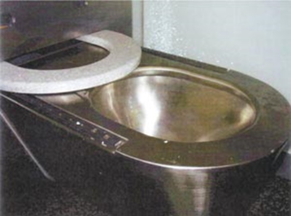 In diesen öffentlichen WC-Anlagen wird nach jeder Benutzung die Toilettenbrille automatisch gereinigt. Dazu wird die Brille in einen Technikraum gezogen, dort gereinigt und desinfiziert. Beim Ausfahren wird der Sitz getrocknet. Die verwendete Linearführung soll stabil und beständig gegen Korrosion, Verschmutzungen sowie Reinigungschemikalien sein. Hier wurden zwei drylin® T-Lineargleitführungen mit je zwei Schlitten mit der gefrästen Corran-Sitzbrille verschraubt. Die Führungsstangen werden auf dem Edelstahlsitz und in der Reinigungswanne verschraubt. Die Sitzbrille wird von einem Schrittmotor bewegt.