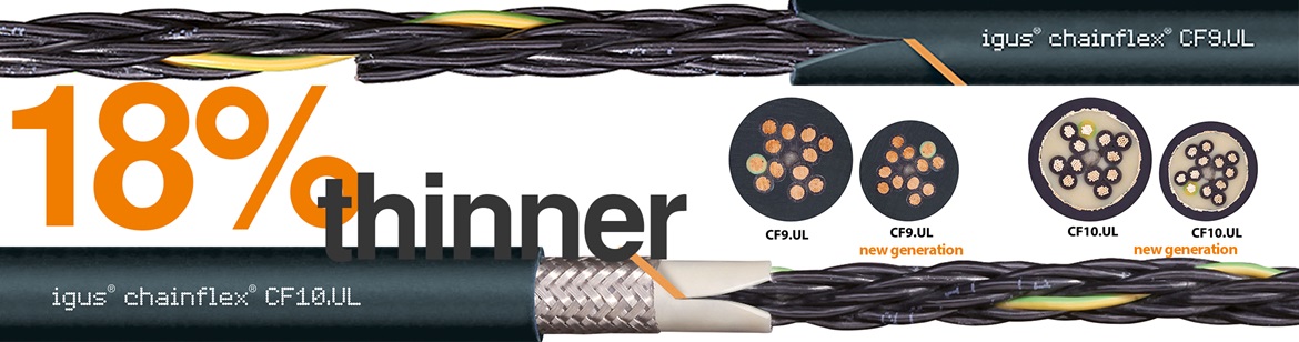 • Un diametro di 18% più piccolo permette di usare sistemi per catene portacavi più compatti