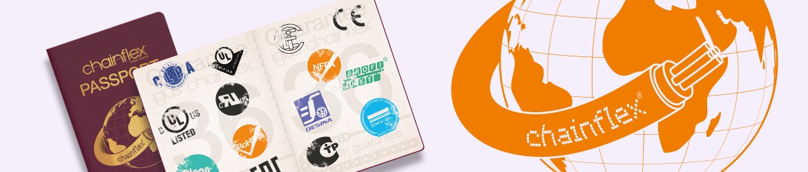 Pour nos câbles chainflex, cela signifie que nous accordons une importance particulière au respect, partout dans le monde, de toutes les directives et dispositions d'homologation des principales normes en vigueur. Nous pouvons ainsi vous proposer le bon câble pour chaque application ou presque, partout dans le monde.