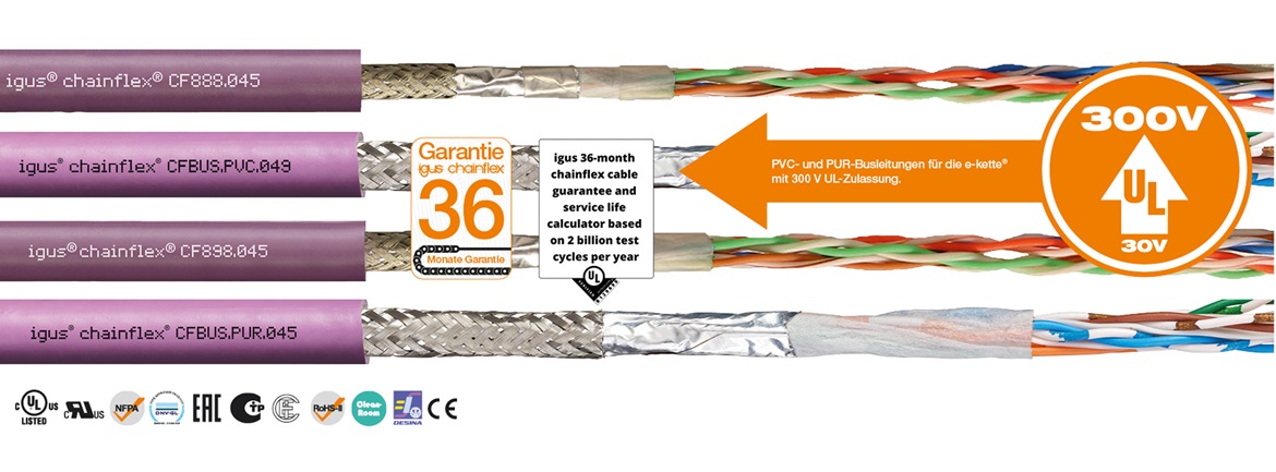 Conséquence logique de cette exigence technologique, igus a fait valider par un organisme extérieur, en 2020 et est la première entreprise allemande à le faire ; la promesse de marque pour ses câbles chainflex. Au terme d'un processus de certification complexe, l'institut américain « Underwriters Laboratories » a confirmé l'exactitude de l'affirmation «igus® 36-month chainflex cable guarantee and service life calculator based on 2 billion test cycles per year». igus est ainsi la première entreprise d'Europe a avoir fait confirmer par une institution de contrôle de réputation internationale la véracité de son affirmation publicitaire.