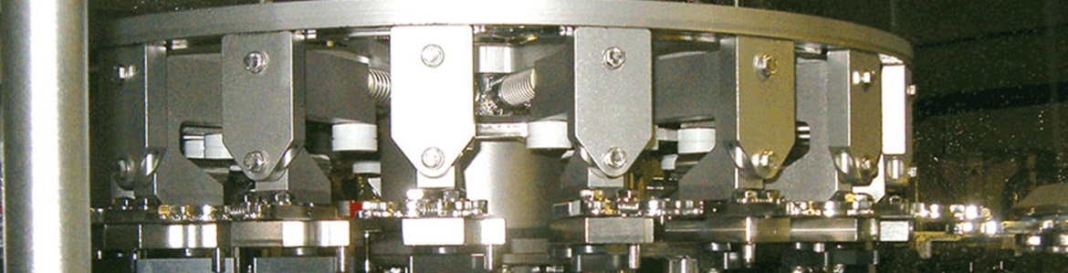 Pro Umdrehung des Entkopplungssterns müssen die Lager z.B. eine Wegstrecke von rund 100 mm zurücklegen, was – auf die Lebensdauer bezogen – einer Gesamtlaufleistung von ganzen 2.900 km entspricht. Dabei treten hohe Beschleunigungen sowie Geschwindigkeiten von 170 mm/s auf. Da der Rückziehstern innerhalb des keimfreien Füllers arbeitet, gelten hier hohe aseptische und hygienische Anforderungen an alle Lager. Nur besonders gestaltete Funktionselemente verkraften zudem die konstant feuchten und chemisch-aggressiven Umgebungsbedingungen: Luftfeuchtigkeit zwischen 90 und 100 %, Temperaturen bis 95 °C, aggressive Reinigungsmittel – eine Kombination aus niedrig konzentrierten Säuren und Laugen, etwa Natronlauge mit Salpetersäure, Phosphorsäure und Peressigsäure, sowie Heißdampf und -wasser.