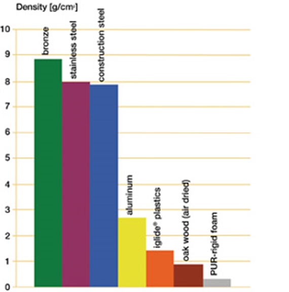 2. Kunststoffbuchsen sind sehr leicht. Somit können die iglidur® Gleitlager auch zur Verringerung des Kraftstoffverbrauchs und des Kohlendioxidausstoßes von z.B. Outdoor-Equipment, Kraftfahrzeugen und Flugzeugen beitragen. Die Gewichtsreduzierung führt zu geringeren Massen und folglich zu einem geringeren Energieverbrauch.