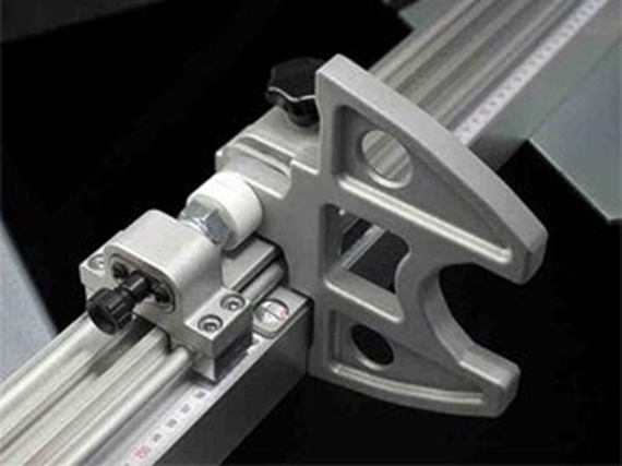 „Der Längenanschlag überzeugt vor allem durch den geschmeidigen Lauf des Anschlagschlittens. Beide Anschlagreiter laufen auf hochwertigen Lineargleitlagern aus verschleißfestem Hochleistungspolymer…“