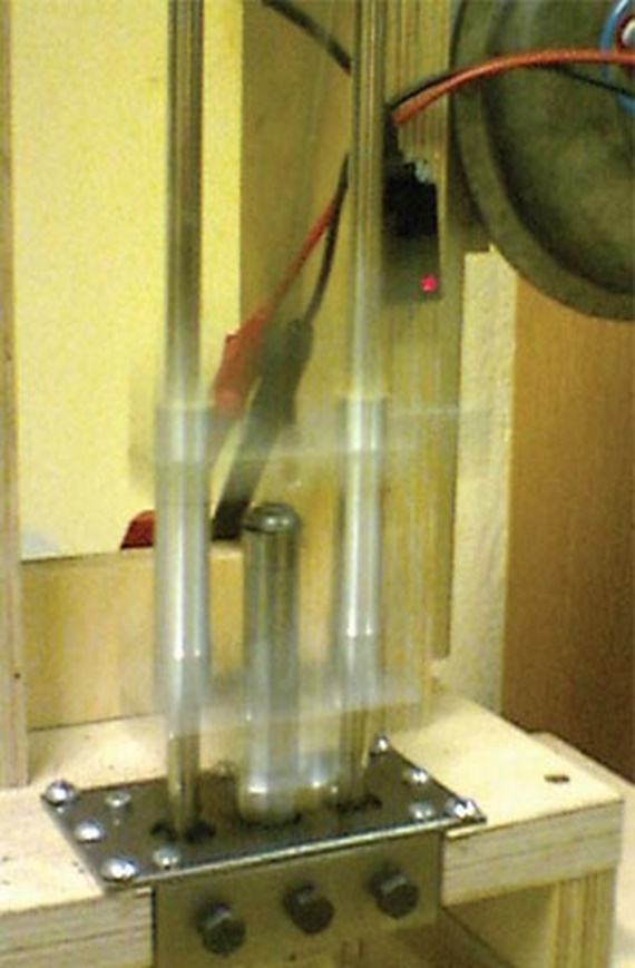 „Pneumatikdichtungen mit geringem Durchmesser sollen auf Verschleiss geprüft werden. Dazu werden sie im Schlitten eines Kurbeltriebes montiert, während die Stange, auf der sie gleiten, fest steht. Der Schlitten ist mit drei igus® -Gleitbuchsen auf zwei Stangen vertikal geführt und wird über einen Kurbeltrieb angetrieben. Das Pleuel ist mit igubal® -Kugelköpfen versehen. Schlitten und Pleuel sollten möglichst leicht sein, um keine unnötigen Massenkräfte zu erzeugen. Für diese Anforderung sind die igubal®-Kugelköpfe besonders gut geeignet. Sie zeigen nach etwa 15 Mio. Arbeitsspielen noch kein merkliches Spiel. Die Lineargleitführungen sollten ungeschmiert arbeiten, damit der Prüfling nicht mit anderen Schmierstoffen als dem vorgesehenen Fett in Berührung kommen kann.”