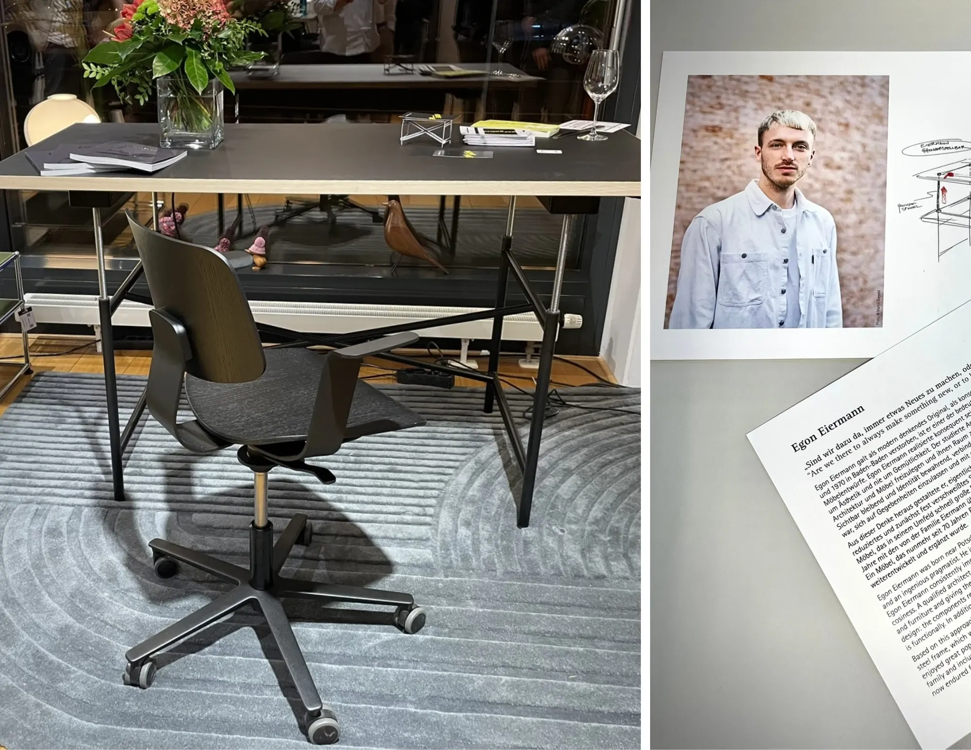 Der ursprüngliche Eiermann Tisch von 1953 steht für minimalistisches Design und Funktionalität. Tim Schütze entwickelte ihn weiter, um ihn an moderne Arbeitsplatzbedürfnisse anzupassen – ohne die klare Form zu verändern.